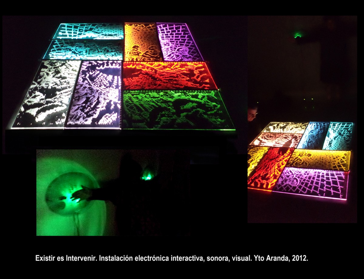 8 interactive audio devices connected to a lighting painting. Variables sounds. Sensors. To perform the work in its entirety (8 audio circuits + painting full light) 8 people are needed. The work can´t be seen entirely by only one person, however, it is sufficient that a person transiting through the room to generate sounds. Although not wishing to participate in the work.